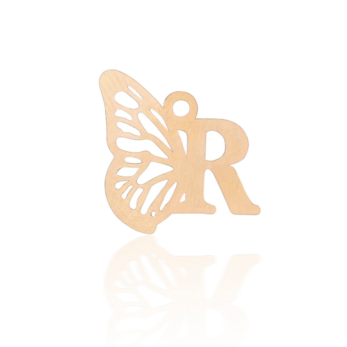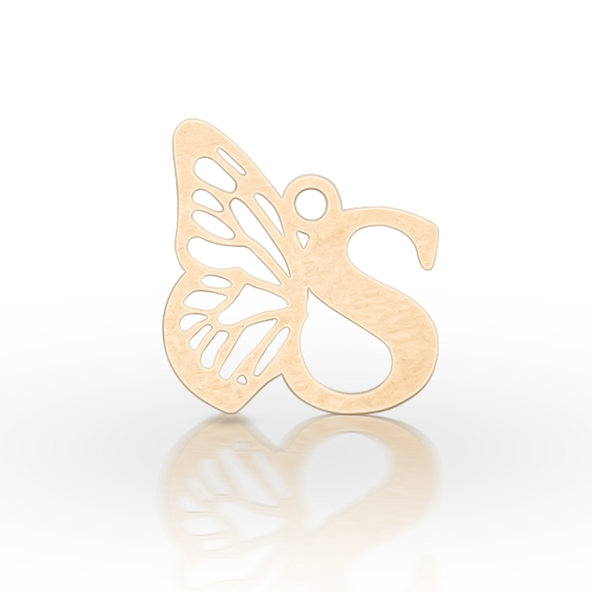 پلاک طلا زنانه طرح حرف M با بال پروانه