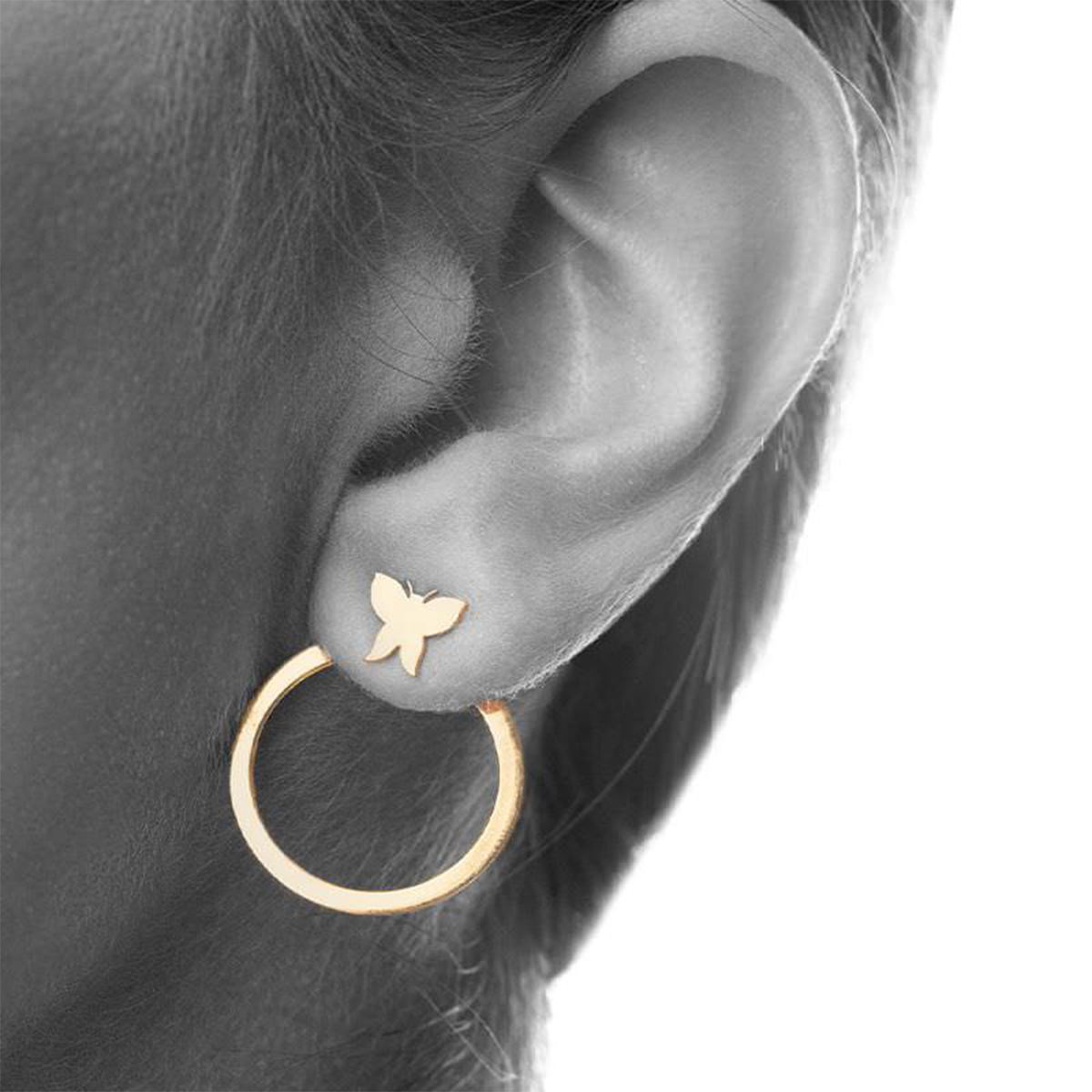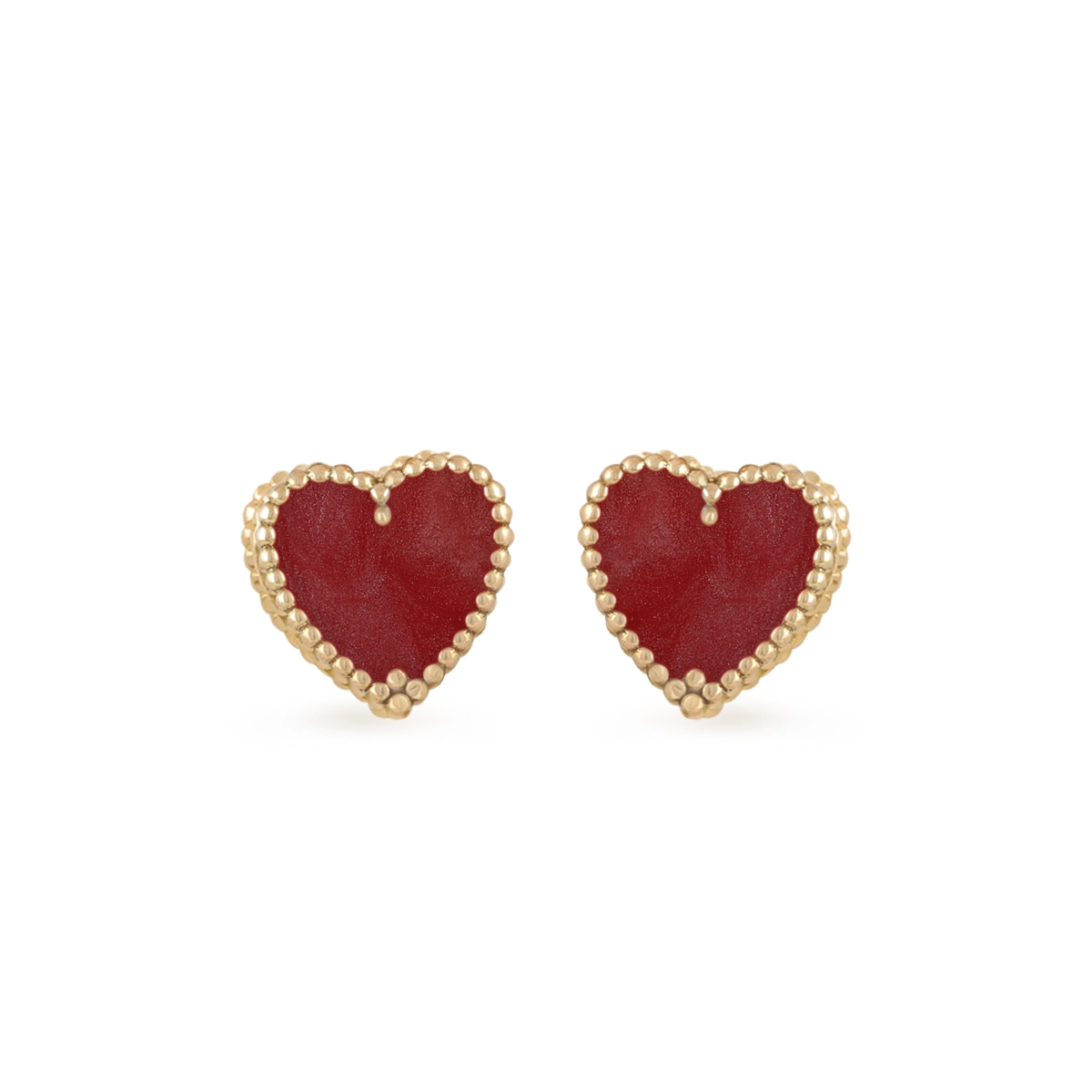 گوشواره طلا 18 عیار زنانه قو طلایی طرح سه قلب آویزی