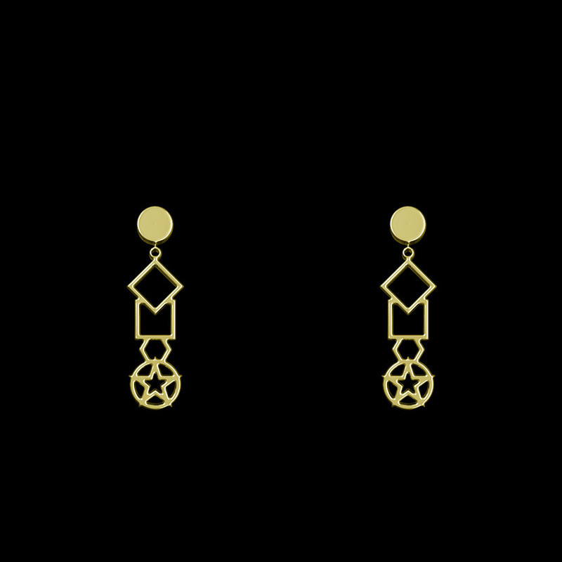 گوشواره طلا 18 عیار زنانه قو طلایی طرح مثلث و ذوزنقه آویزی
