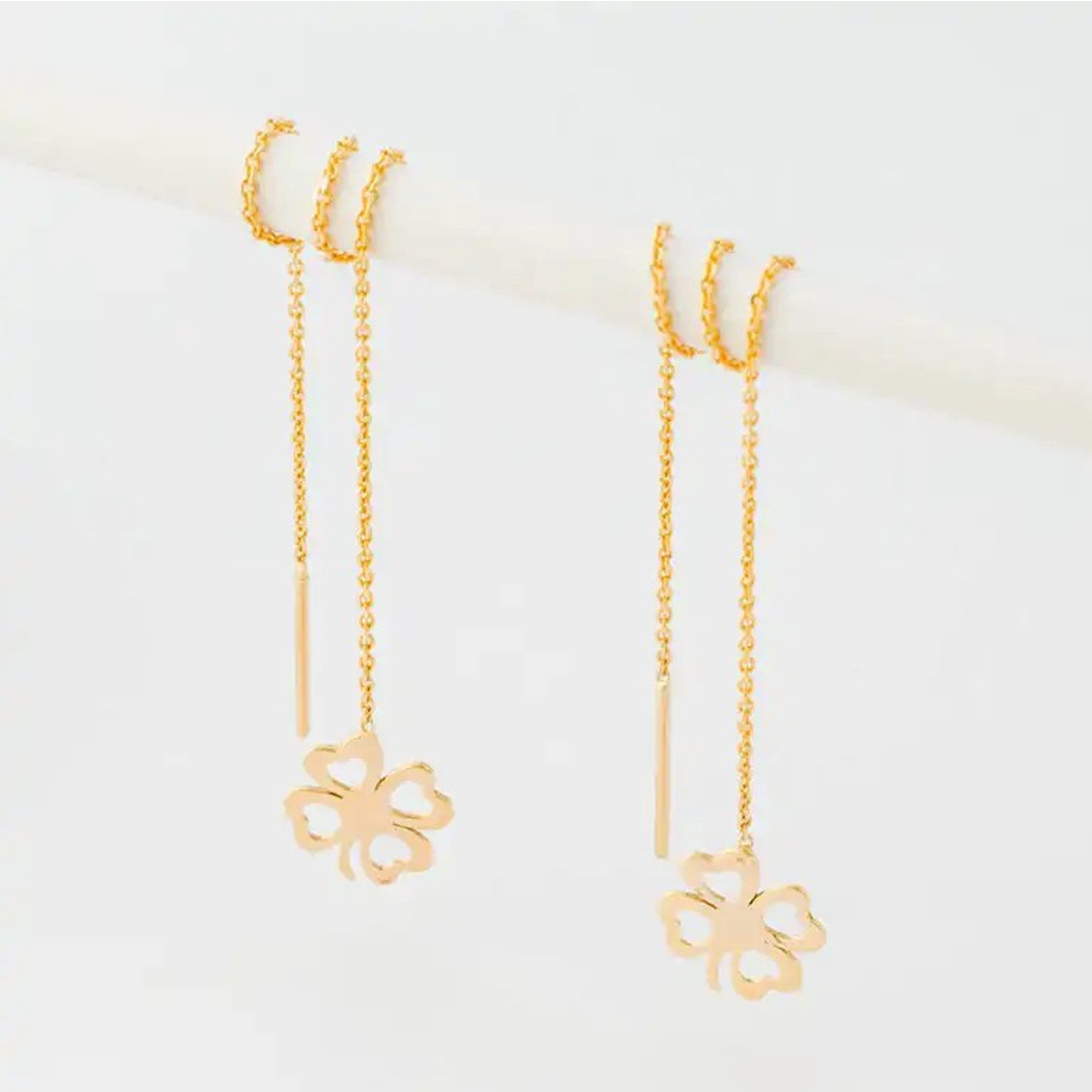 گوشواره بخیه ای طلا 18 عیار زنانه قو طلایی طرح ونکلیف مینیمال