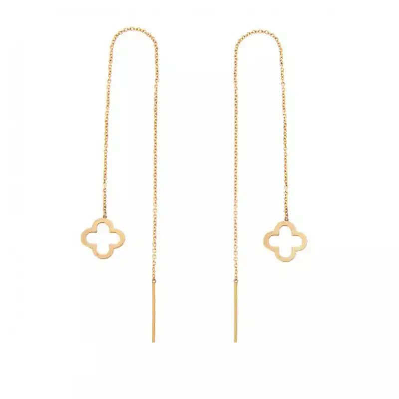 گوشواره بخیه ای طلا 18 عیار زنانه قو طلایی طرح پر قو