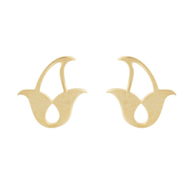 گوشواره طلا 18 عیار زنانه قو طلایی طرح شبدر ساده