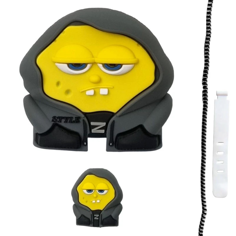 محافظ کابل شارژ سانیوان طرح باب اسفنجی به همراه محافظ شارژر دیواری مجموعه 4 عددی