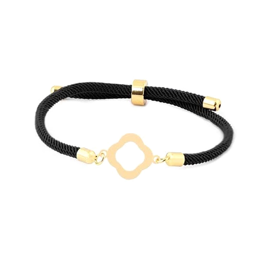 دستبند طلا زنانه شمیم گلد گالری مدل آسانسوری پلاک دار طرح گلبرگ رنگ مشکی