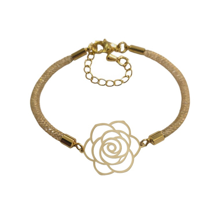 دستبند طلا 18 عیار دخترانه شمیم گلد گالری مدل گل رز کد 645