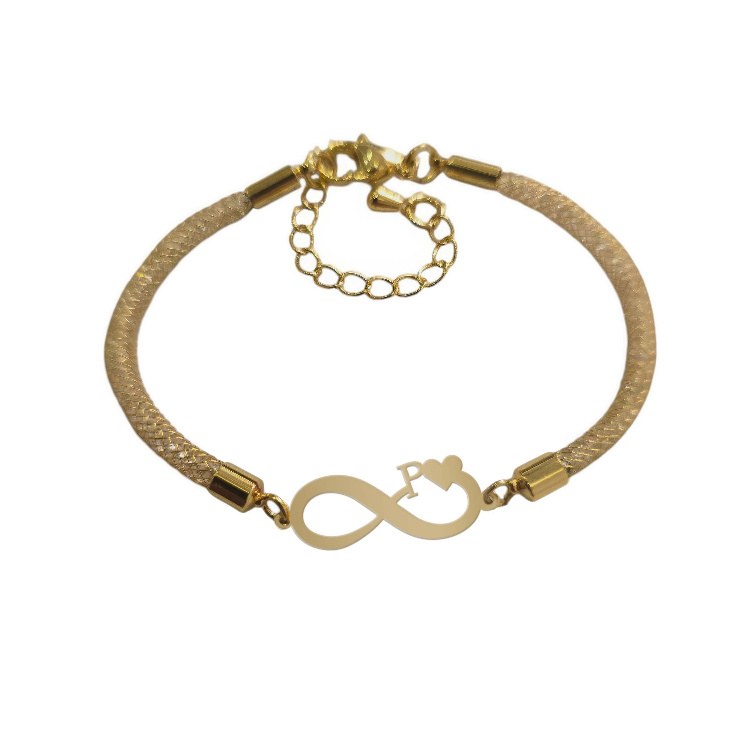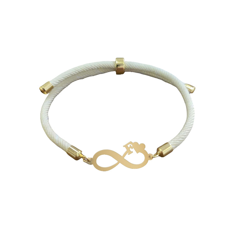 دستبند طلا 18 عیار زنانه شمیم گلد گالری مدل بینهایت و حرف F کد D65-9