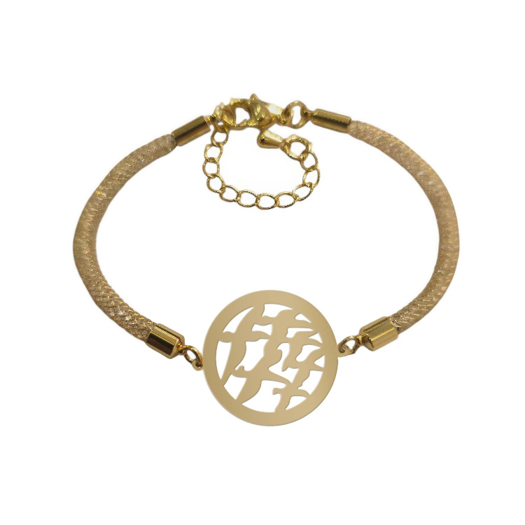 دستبند طلا 18 عیار زنانه شمیم گلد گالری طرح مینیمال دایره و برگ کد D73-5