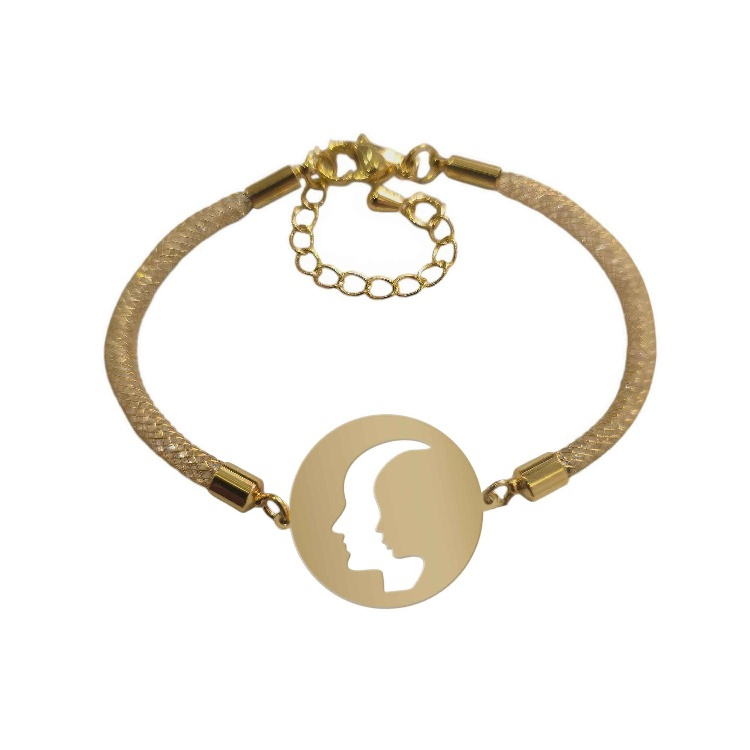 دستبند طلا 18 عیار زنانه شمیم گلد گالری مدل چهره پدر و فرزند کد D7-38