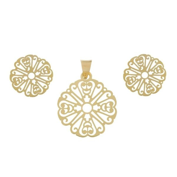 نیم ست طلا 18 عیار دخترانه شمیم گلد گالری مدل نقش زیبا طرح دایره 456
