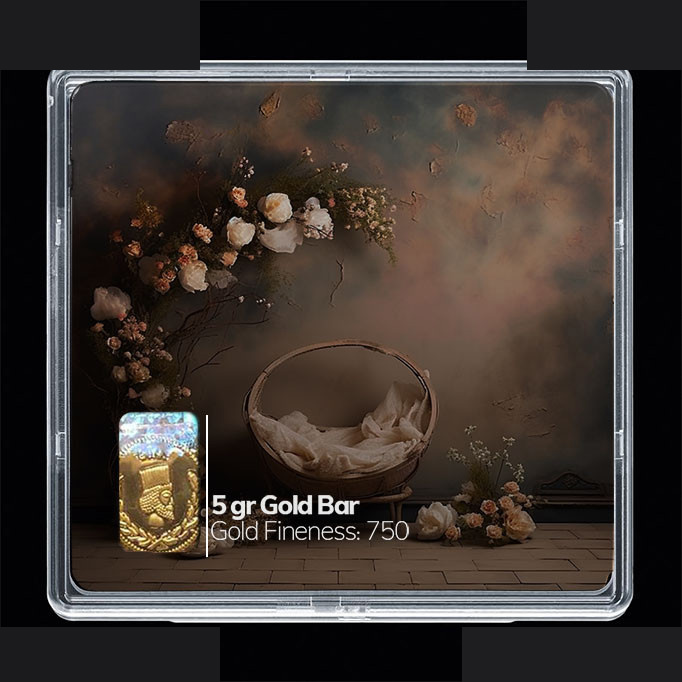 شمش طلا 18 عیار 100 سوت مدوپد مدل سبد و گل کد SG10318