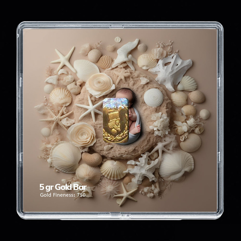 شمش طلا 18 عیار مدوپد مدل نوزاد و صدف کد SG10214