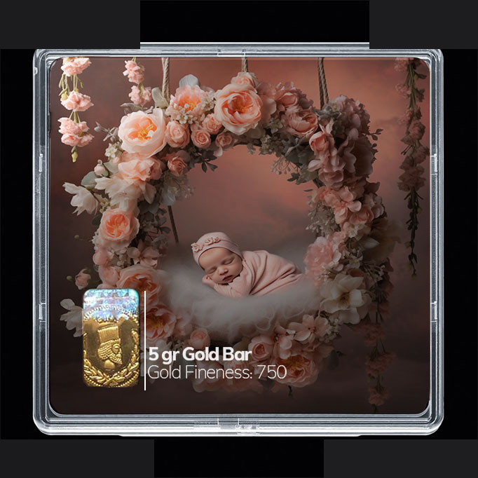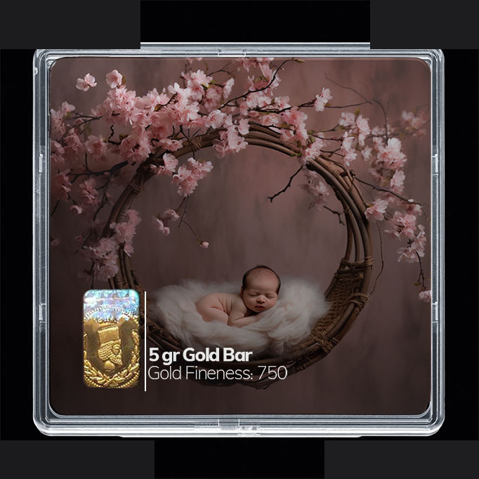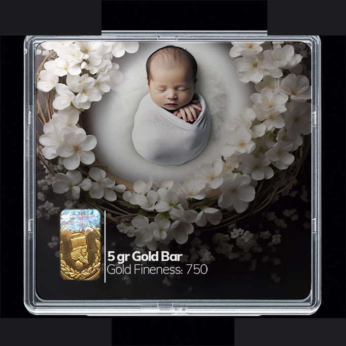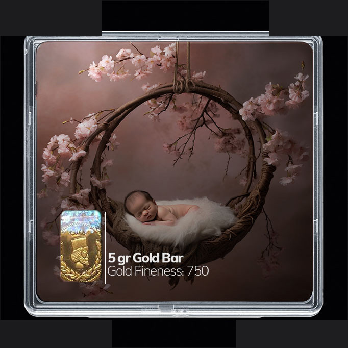 شمش طلا 18 عیار مدوپد مدل نوزاد و صدف کد SG-10214