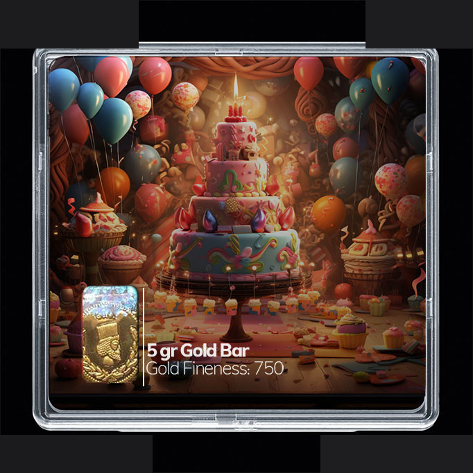 شمش طلا 18 عیار مدوپد مدل کیک و بادکنک کد SG10770