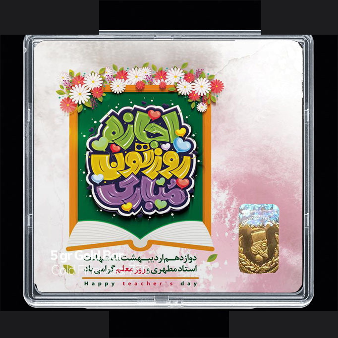 شمش طلا 18 عیار مدوپد مدل روز معلم کد SG11702