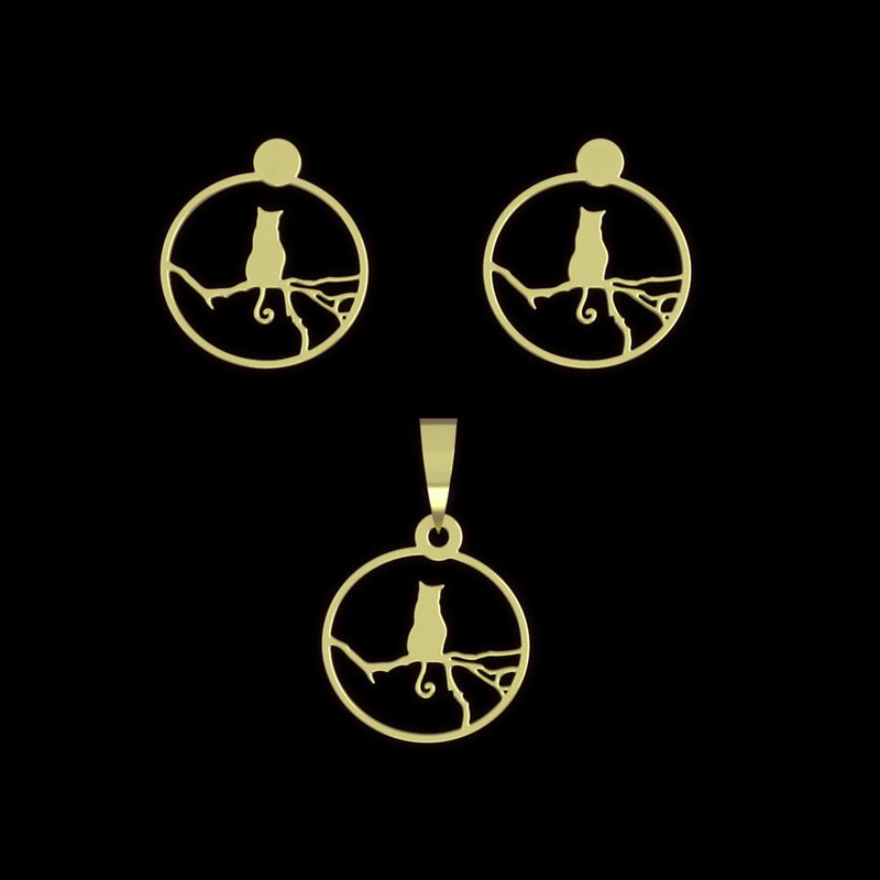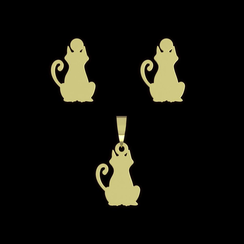 نیم ست طلا 18 عیار زنانه مدوپد مدل گربه کد NA12543