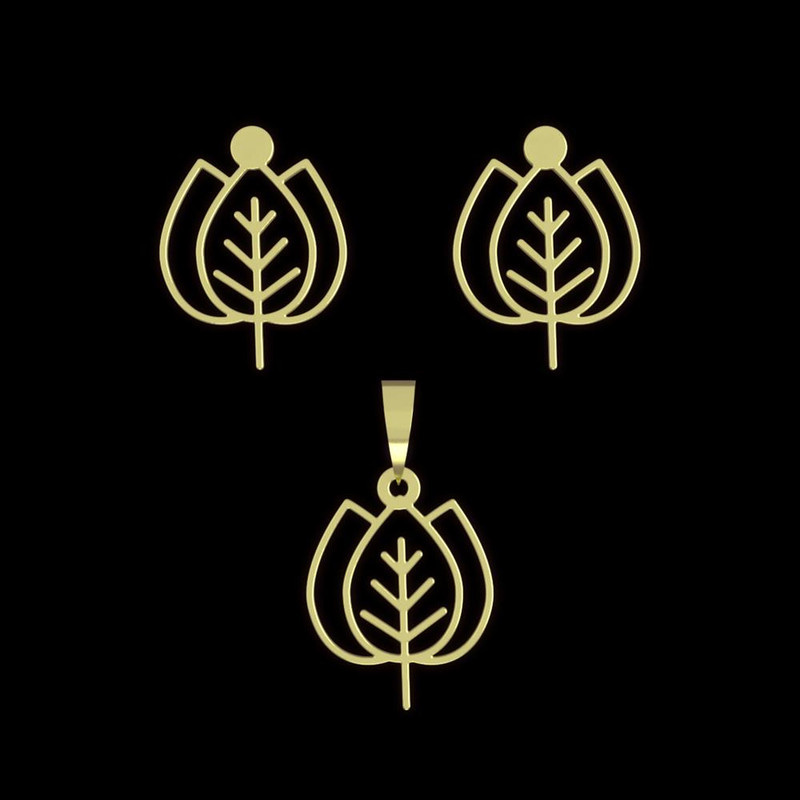 نیم ست طلا 18 عیار زنانه مدوپد مدل برگ کد NA16001